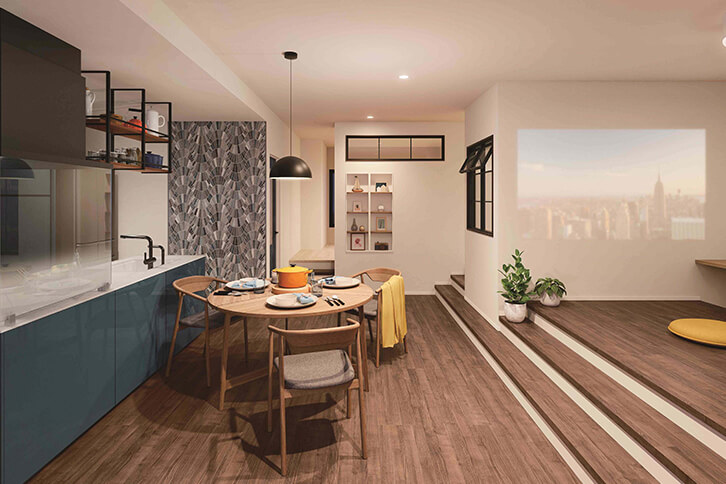 家族の気分を上げるスキップフロアのあるマンションリモデル